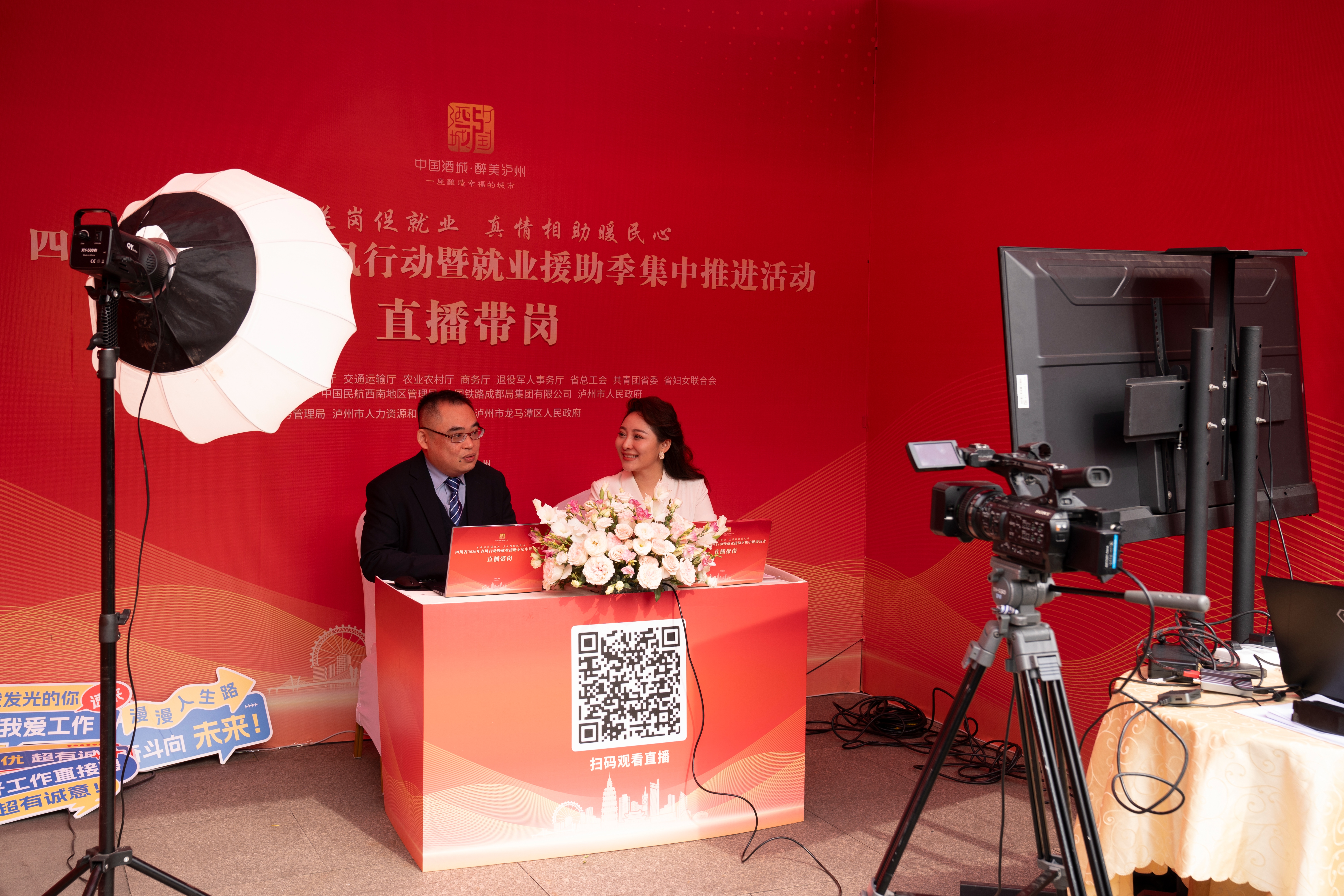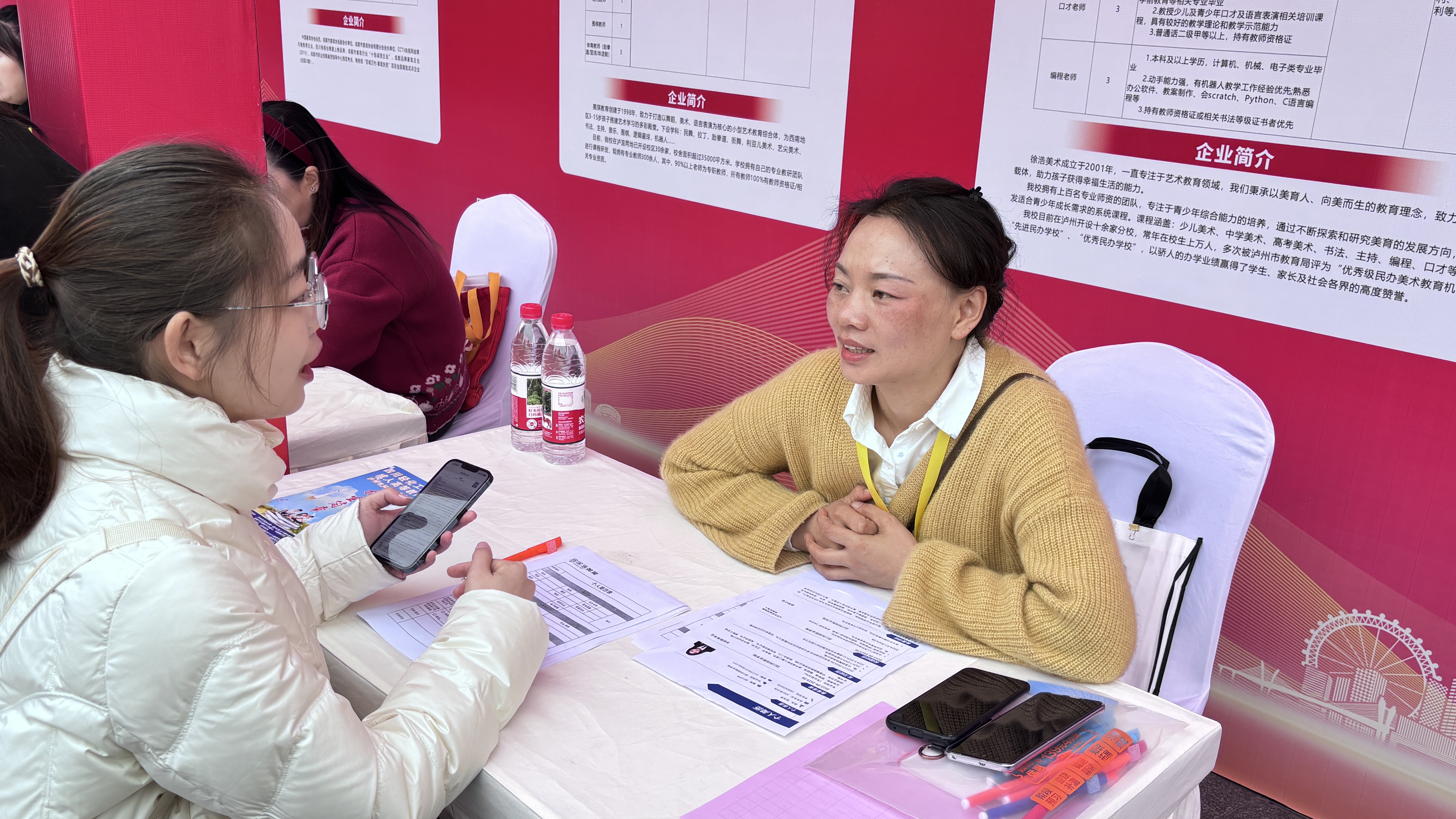 此外,活动还同步通过泸州广电云、酒城e通等平台开展“直播带岗”活动,累计吸引17.87万人次关注收看。同时,活动现场设置了数字赋能、创业展示、职业指导、创业服务、直播带岗、政策宣传区等功能专区,提供创业成果展示、职业指导、政策宣传服务。