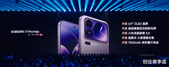 销量最好的是小米17ProMAX,则是对标iPhone17ProMAX的最顶配手机;也是当下小米用了最新创新技术的产品,例如屏幕(超级像素的)眼光屏幕;小米宣传的逆光之王的光影猎人950L;小米龙晶玻璃 3.0、相比Pro尺寸更大,也就塞下了徕卡超聚光潜望长焦。